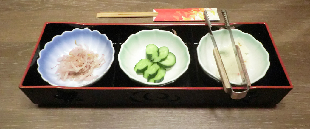 最初に出されたのが漬物3点盛り。これは武蔵総本店(豊橋市)さんと
