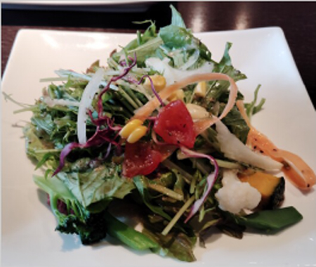 前菜のサラダはセロリがアクセント、メインディッシュは3品から選べました。私は白身魚をチョイス。飲み物とデザートも選べたのが嬉しい。グレープフルーツジュースと焼きタルトをチョイス。食事も美味しく、話も弾んで楽しいひと時でした。