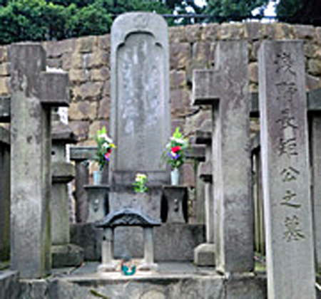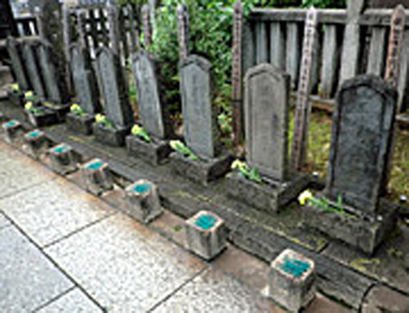 ご存じの方も多いと思いますが、泉岳寺は赤穂藩主浅野家の菩提寺で、主君浅野内匠頭や大石内蔵助良雄を筆頭に赤穂四十七義士が眠る墓地があります。境内には大石内蔵助の銅像や赤穂事件にまつわる梅や石、井戸が並び、その先の奥まった場所に赤穂義士の墓地があります。