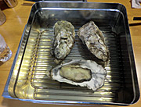 おすすめの浜名湖産カキのがんがん焼き(蒸し焼き)、岩手産の焼きガキをいただきました。いずれも大ぶりで、食感はぷりっぷり。特に焼きガキはとても香ばしく、口の中一杯に磯の香りが広がって「ウマイ!」の一言。