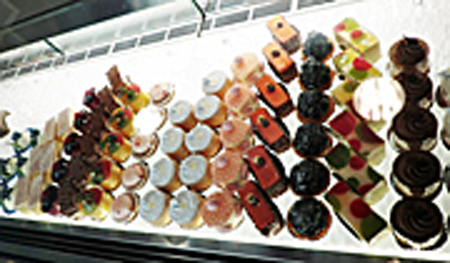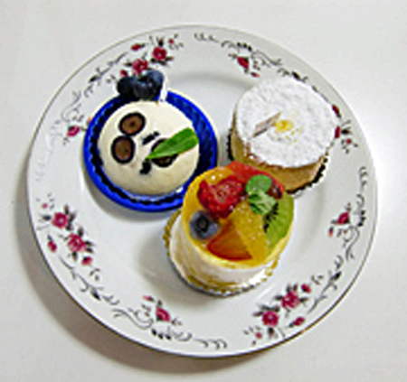 本来は生クリームよりも断然あんこ派のワタクシですが、こだわりのケーキを一度は食べてみようと、(定休日がかぶっているので)夏期休業中に行ってきました。売り切れを心配して開店早々に到着しましたので、ショーケースの中にはケーキがズラリ。ケーキというよりも、色とりどりのジュエリーが整然と並べられている感じ。お子様や女性、おみやげにもきっと喜ばれるだろうなぁと思いました。小さなケーキの、そのまた小さく書かれている料金プレートを覗き込んでみると、これがなかなかのお値段でした(汗)。