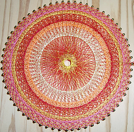 Kさんに思いがけず糸かけ曼荼羅をいただきました。こんな私のために一糸一糸釘にかけて手作りして